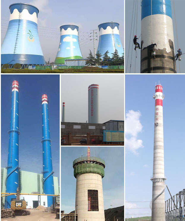 “宏順建設(shè)工程有限公司”主要服務(wù):(國內(nèi).國外)210米以下各種(磚、水泥、砼、鋼結(jié)構(gòu))煙囪的新建滑模、防腐、維修、拆除、加固、脫硫、美化、加高、傾斜校正、更換內(nèi)襯、內(nèi)壁清灰、安裝平臺、安裝避雷針等高空作業(yè)工程;并承接水塔、冷卻塔、涼水塔、造粒塔、鍋爐鋼架、鋼梁屋架、管道、行車、儲罐、變電構(gòu)架、廠房網(wǎng)架、龍門吊等新建、防腐、維修、美化等工程。